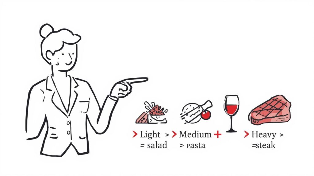 軽い料理にはライトボディ、重い料理にはフルボディを合わせれば失敗しません。